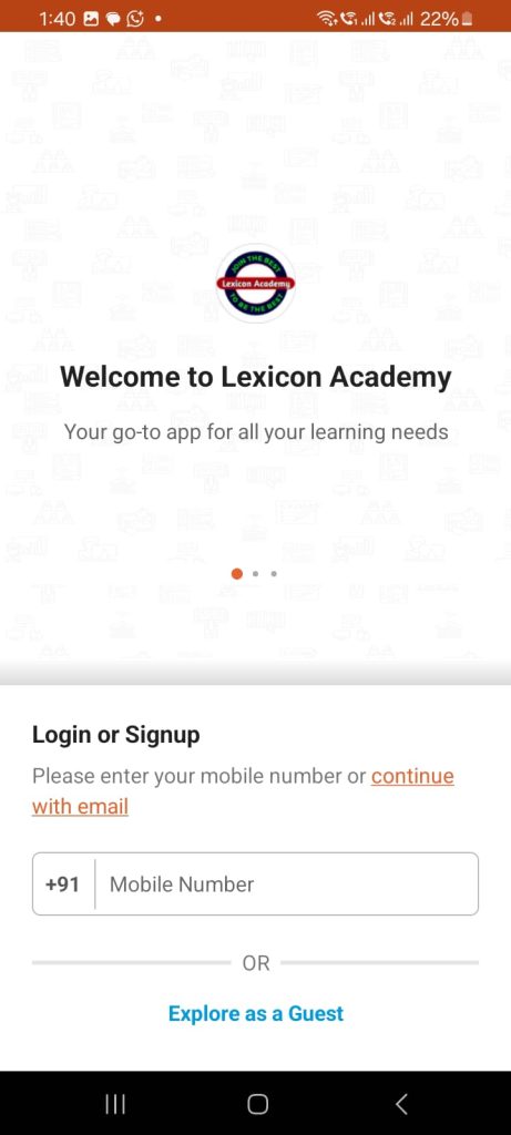 Click on the “Login Or Sign Up” as the arrow indicates. Sign Up only available in Android app. Enter Mobile Number.